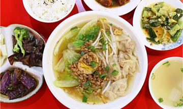 吃光食堂的套餐都會搭配六宮格的配菜,其中的配菜還是飯後甜點檸檬愛玉,還有附上一杯熱茶。