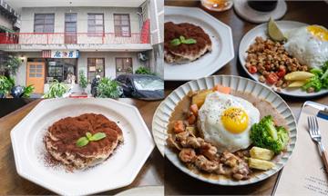 門口可見店內內用需求,分成兩間店,一樓是甜點店,二樓是復古風板橋老屋咖啡廳,大門口清楚可見兩個木門,真的很特別。