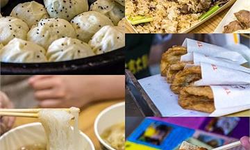 家閎臭豆腐販售的臭豆腐均為大份出餐,在以袋子隔絕油汙的盤子上擺滿一塊塊金黃酥香的臭豆腐、灑上蔥花、淋上獨門醬汁,擺入台式泡菜上桌。