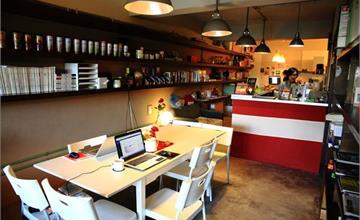 整面落地窗,整片玻璃,讓室內採光非常的棒,從戶外就可觀看店內一景,非常的舒服的空間。