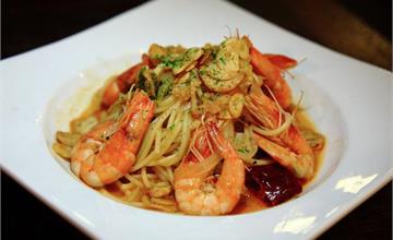簡單擺盤,新鮮的太平洋明蝦與白菜,簡單香煎下,料理口味就很好。