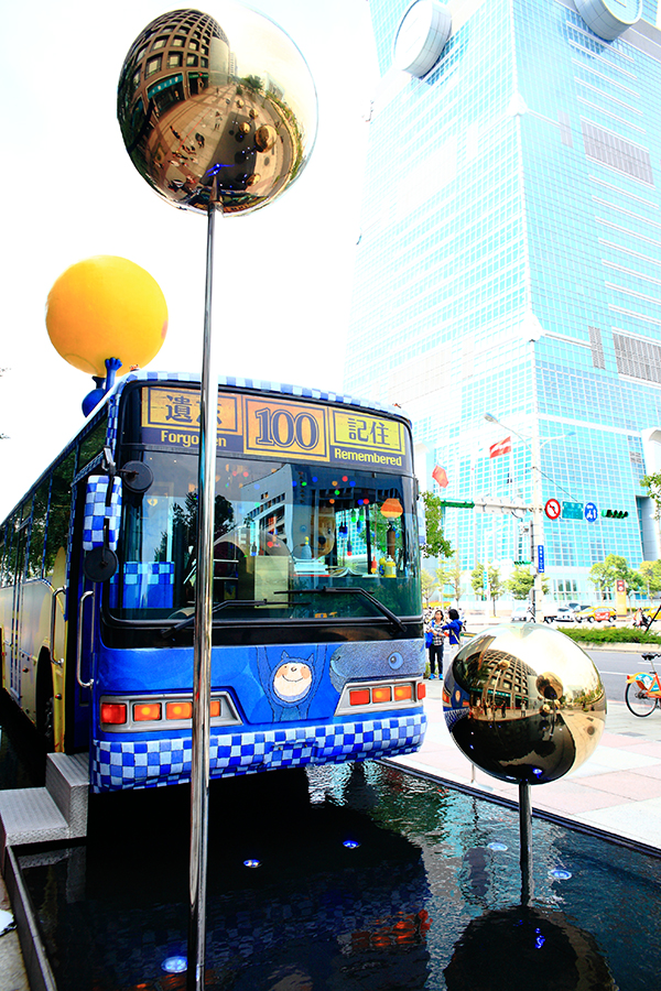 公車車牌號碼也特別換上幾米裝置藝術公車~遺忘&記住100號,用品牌故事帶入童趣世界的巧思。