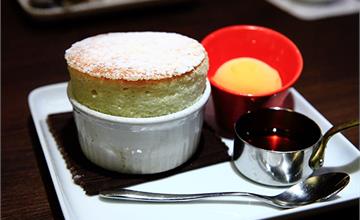 溫熱香蕉蛋糕,跳脫一般香蕉蛋糕是冷的,這裡的香蕉蛋糕反倒燙口,是熱的甜點,夠讓人驚艷,香蕉蛋糕綿密,扎實,好吃,可惜上頭的巧克力醬太多,顯得有些微甜,若不要沾上這麼多巧克力醬汁,會更好吃,更襯托出香蕉蛋糕的美味。