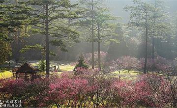 櫻花下的湖心亭,頗有身在日本的風味。