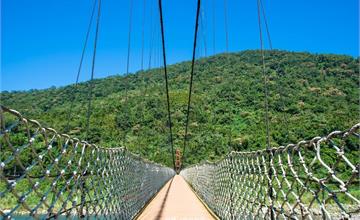 豆腐之間的間隔有的很大,而且下面就是湍急的溪水,所以要小心跨越!