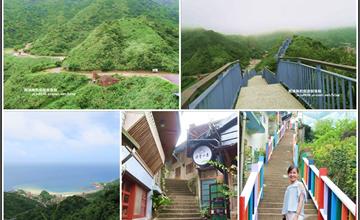 金瓜石小旅行。360度美景報時山步道。本山六坑的斜索坡道。漫步祈堂老街彩虹階梯