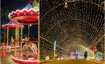 台中西屯|2021中央公園聖誕裝置:紅色夢幻旋轉木馬、黃色燈海隧道,打卡浪漫聖誕裝飾!