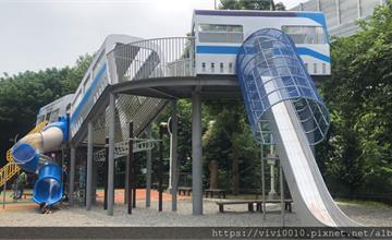 《新北林口》林口樂活公園,全台首座捷運造型溜滑梯,4米高超刺激,還有好多創意遊具等你來玩