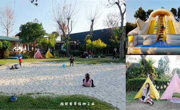 苗栗三義|玫瑰園、野餐風帳篷、月亮鞦韆超好拍!大沙坑、氣墊溜滑梯免費玩:雅聞香草植物工廠