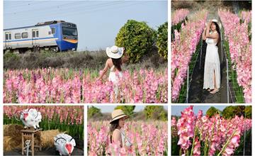 彰化社頭|雙鐵花田:花海列車,粉嫩劍蘭花海火車秘境!鐵道迷、網美必訪的絕美花海
