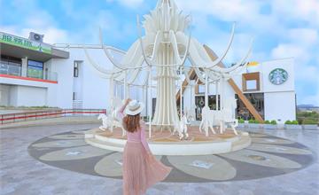 台中后里|全台首座「白色積木城堡」星巴克Starbuck!泰安南服務區開幕~白色旋轉木馬超好拍