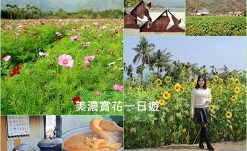 高雄│美濃賞花一日遊 有彩竹陪襯的向日葵、波斯菊花海,漫步美濃湖、柴燒年糕