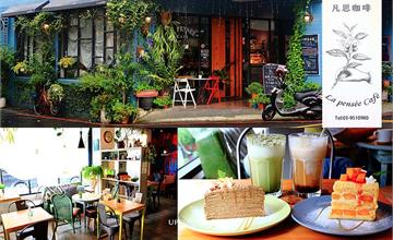 宜蘭羅東|凡思咖啡:轉角邊的藍色系風景,享受限量手作甜點的慢活