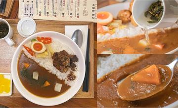 【台中美食】「咖哩厚」創意吃法,台灣茶湯倒入日式咖哩,新品小獅頭頭更是香氣滿點!