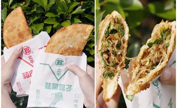 光看就流口水!大甲人氣銅板美食,半煎半炸的金黃半月餡餅與韭菜盒子