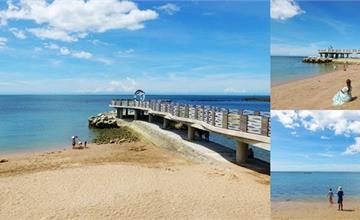 新北三芝|芝蘭公園望海平台:走進海中央,媲美沖繩的海景!大片白沙灘、清澈海水,淺水灣新亮點