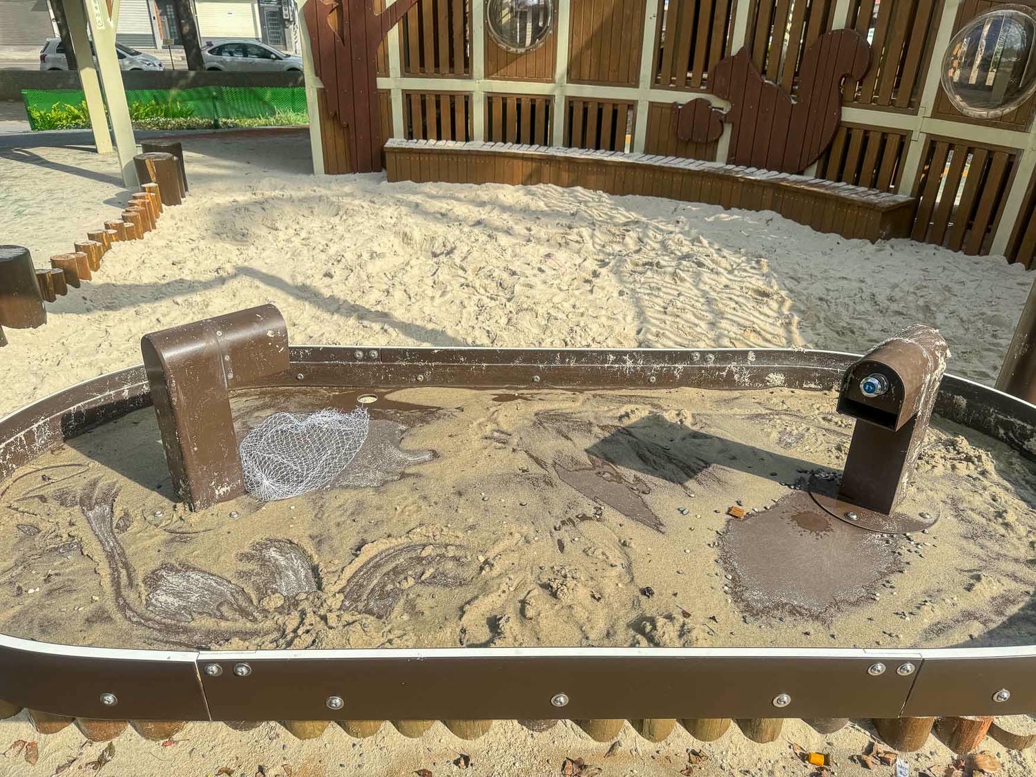 《光明公園》的沙坑是使用天然細沙,更容易塑型訓練孩子的創造力與感覺統合,也有適合不同族群孩子的沙盤遊具。