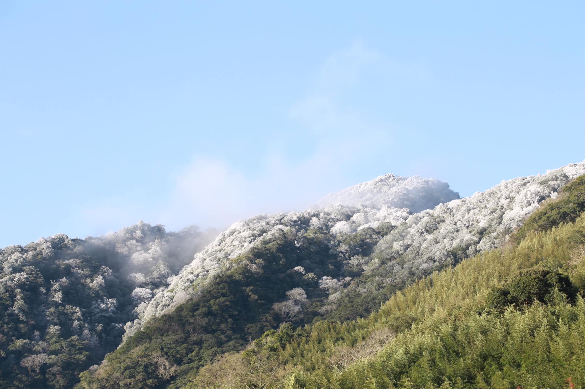 隔天一出帳,對面的山已白了頭