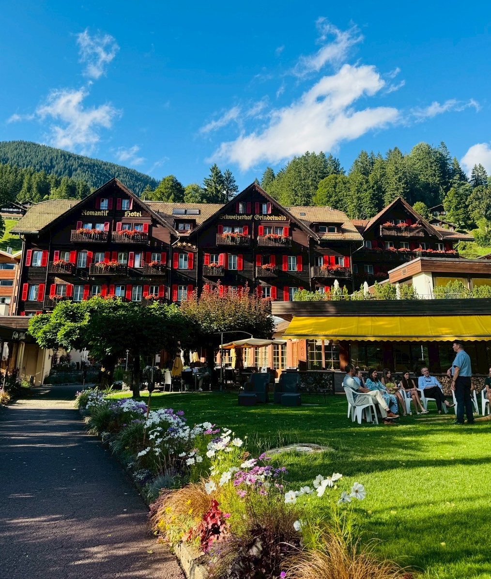 第一天:搭乘「黃金列車」近傍晚抵達「格林德瓦」,入住此區僅有的五星級飯店「施瓦茨霍夫浪漫飯店」,是棟超過百年歷史,充滿瑞士風情的木造建築,四周被群山環繞景色極美,入住於此光是坐著放空賞景就十分紓壓。