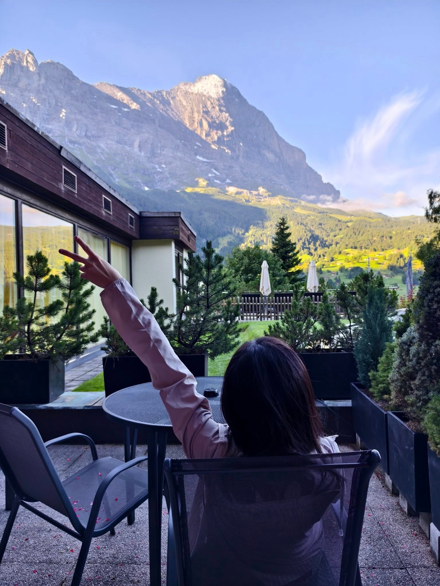 第二天:早起走出陽台即可欣賞「艾格峰」氣勢磅礡的景觀,實在是人生一大享受啊!早餐後是少女峰一日遊,下午回來可到房間休息等吃晚餐。這間飯店有無敵美景,連住兩晚才能細細品賞少女峰山區勝景,步調一切放慢,感受山居的氛圍。