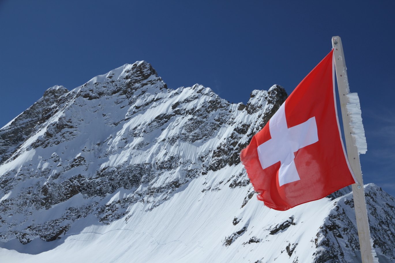 走出車站可到室外近距離拍攝少女峰,一旁還有瑞士國旗,是全界唯一正方形的國旗,眾多旅客排隊拍照