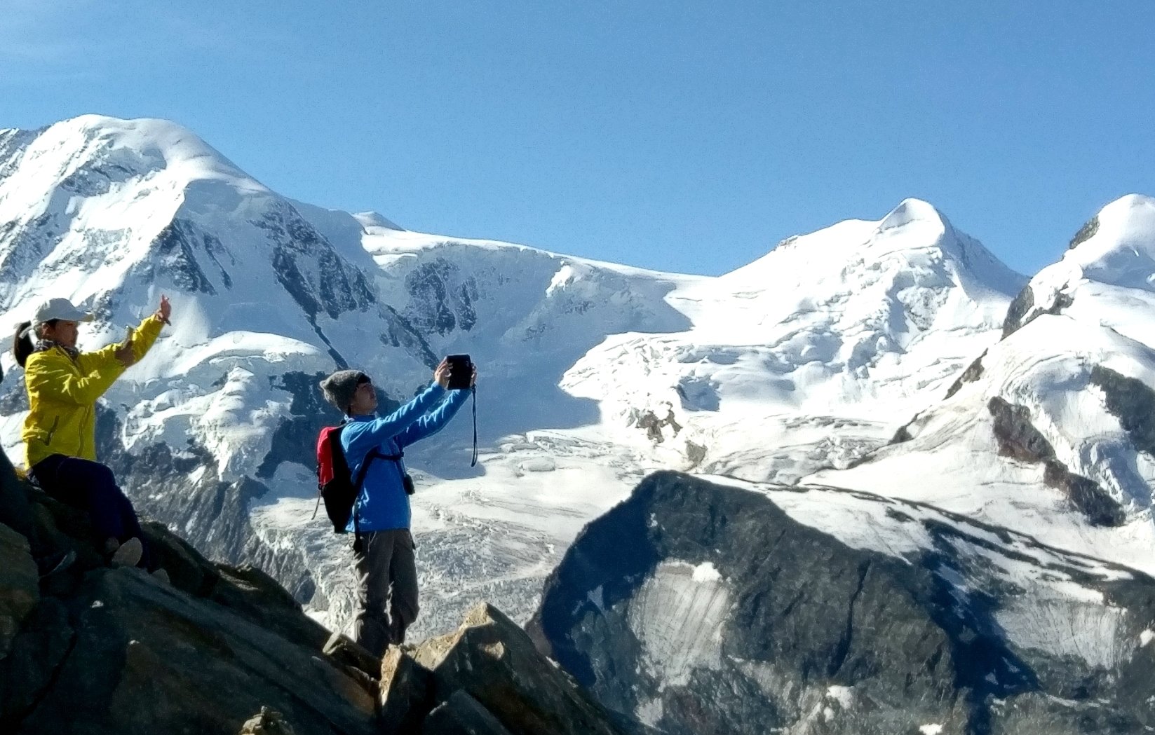 南針峰的觀景台是近觀白朗峰與周圍群峰的最佳地點,山上天氣變化莫測,要抓緊時間趕緊拍照,免得一下子雲霧飄來,整座山都看不到了