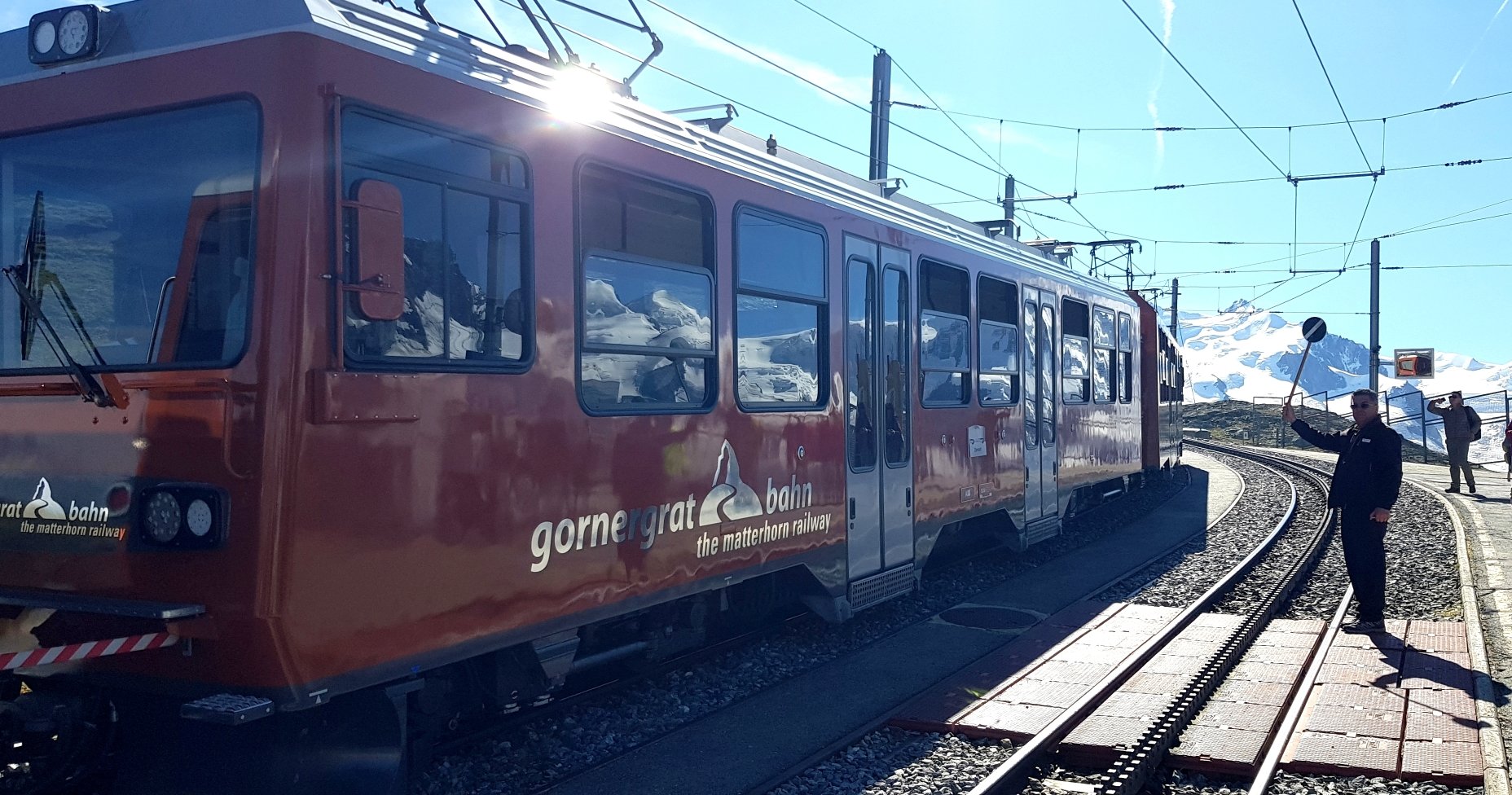 搭乘火車行駛在1898年建立的「高納格拉特鐵路」上,這是世界上第一條電氣化齒軌登山鐵路,窗外沿途一直出現馬特洪峰,讓人驚喜不已