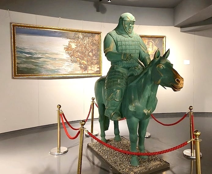 地下室展示蒙古帝國的歷史與文物,這尊雕像不是特定歷史人物的肖像,而是重塑一個蒙古騎兵的形象。騎兵是蒙古帝國的根本力量,展現馬背上的軍隊征服歐亞的歷史榮光。