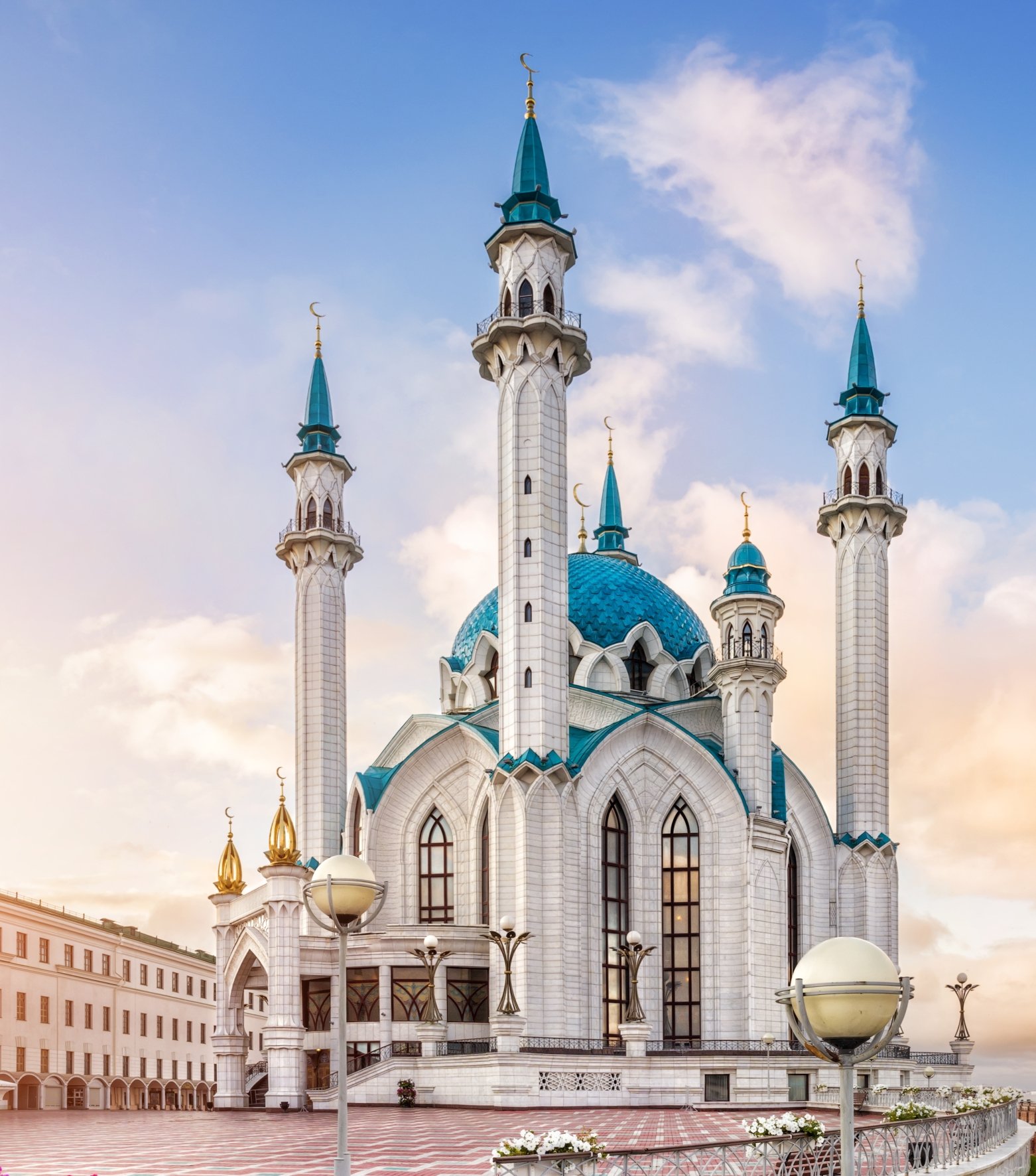 「庫爾謝里夫清真寺」被稱為「喀山王冠」,原建於16世紀,是當時此區最大的清真寺,後來被沙皇伊凡雷帝摧毀。2005年重建落成,正值喀山建城1000週年紀念,代表韃靼文化與伊斯蘭信仰的復興。