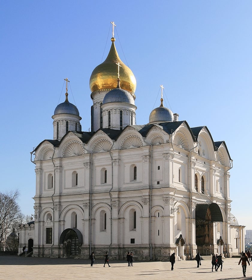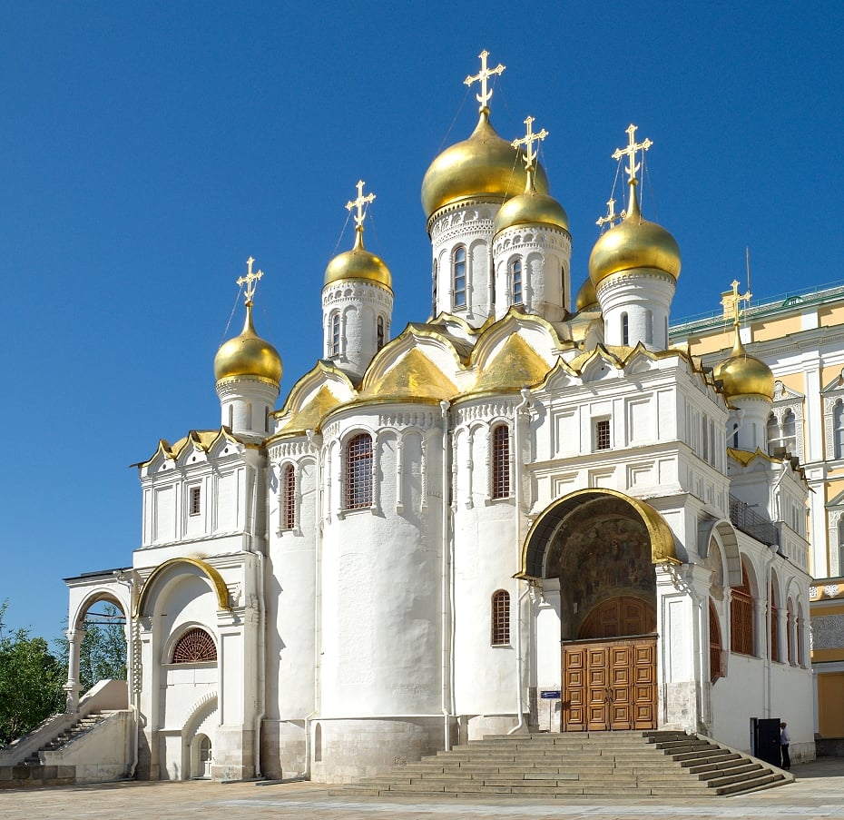 「天使報喜教堂」是沙皇家族私人用於祈禱、婚禮與洗禮儀式,收藏多件皇室聖像、宗教器具與金銀裝飾。原為三個金色圓頂,後來擴建至九個金色洋蔥形圓頂,在陽光下閃耀奪目。