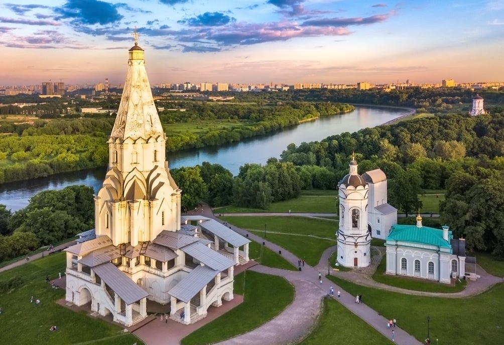 「卡洛明斯科婭莊園」位於莫斯科河的右岸,占地面積達390公頃,是沙皇的避暑山莊。1532年為慶祝王子誕生,修建這座教堂莊園,融合自然景觀、皇室歷史與宗教建築,現今這裡常舉辦各種音樂劇、民間節慶和遊園活動,並被列入世界文化遺產。