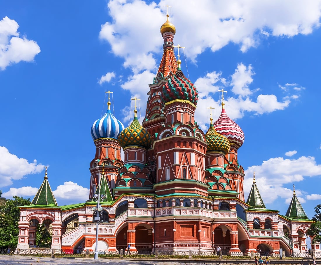 「聖瓦西里大教堂」是伊凡雷帝為紀念征服喀山汗國而建,結合了俄羅斯東正教建築、拜占庭與伊斯蘭風格,形成獨特的「俄羅斯童話式」建築。是九座小教堂組成的建築群,彼此走廊連接在一起,現為博物館,是莫斯科最具代表性的建築之一,並是世界文化遺產。