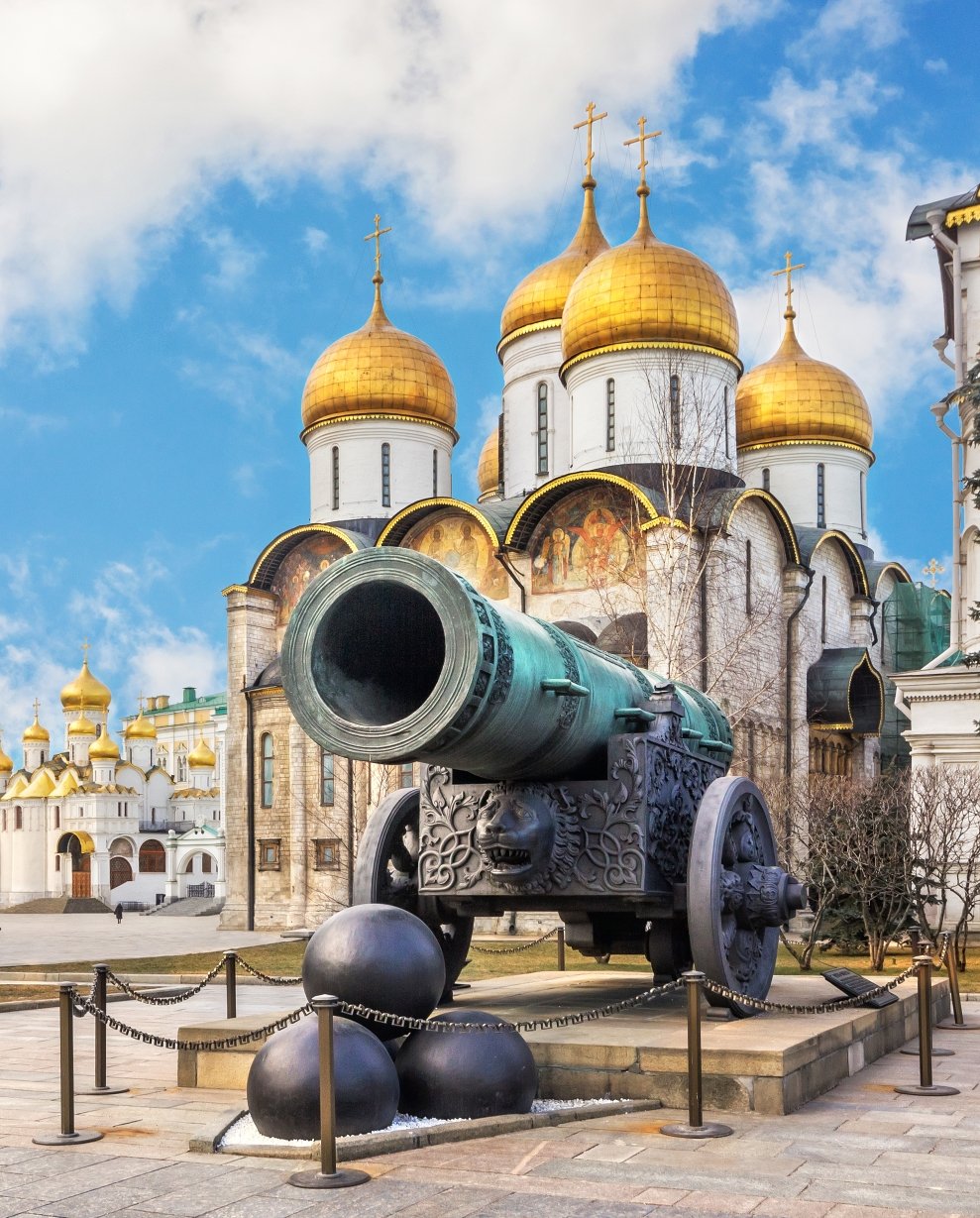 「沙皇鐘」附近的「大砲王」鑄造於1586年,重40噸、口徑890毫米,是世界最大的青銅火炮之一,實際上從未用於作戰,僅是皇室想展現俄羅斯鑄炮技術與國力,用來威嚇而非真正的武器。