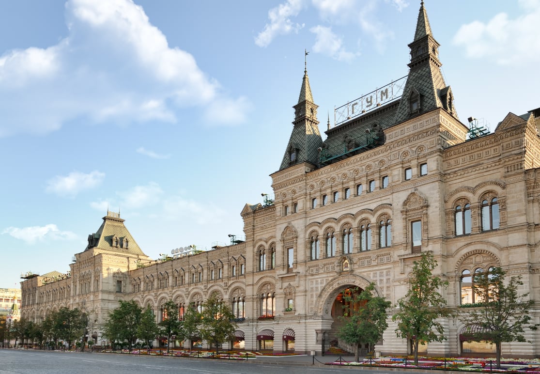 「古姆國營百貨」1893年正式啟用,原是沙皇時代貴族的購物場所,蘇聯解體後轉為商業中心,匯集精品、餐廳與咖啡館,不僅是購物場所,更是融合藝術與工程技術的代表,被譽為「紅場的玻璃宮殿」。