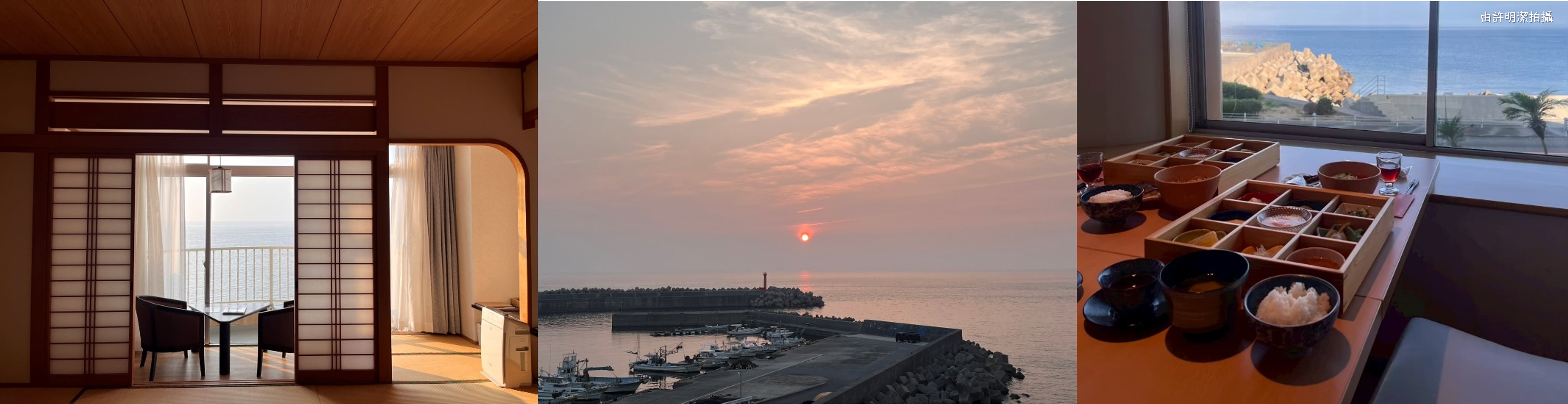望洋閣是位於熊本縣天草地區的「天草下田溫泉」的日式旅館,以其可欣賞日本海景與夕陽的客房、豐富的溫泉設施。飯店提供多樣住宿計畫,也包含一泊二食,晚餐選用當地新鮮食材製作,可以好好享用一頓豐富的晚餐。