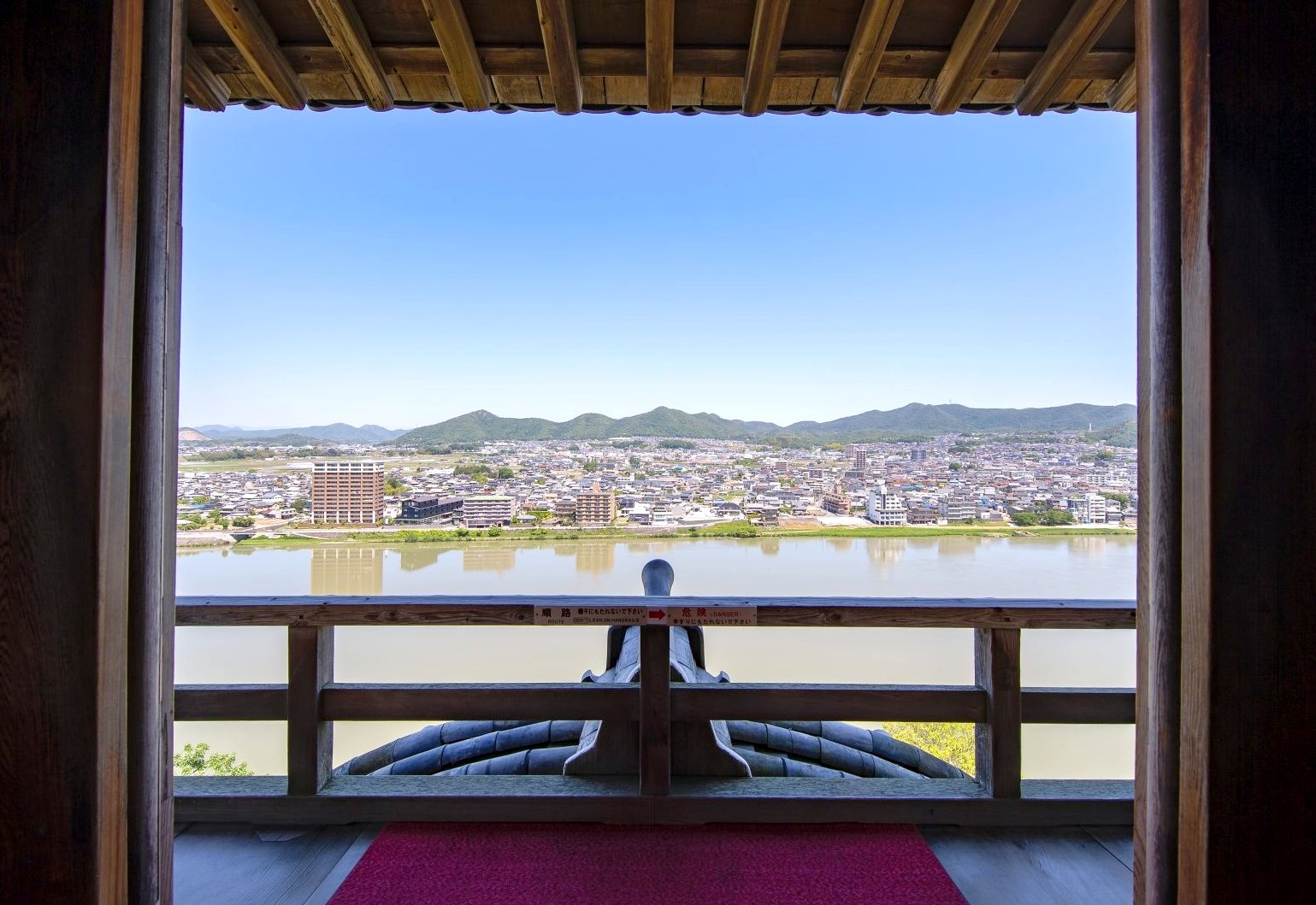 登上天守頂層,映入眼簾的是木曾川壯闊的美景,眼下景色堪稱絕景,此刻旅客彷彿化身為戰國時代的武將,登高遠望敵軍動向,顯得架勢十足,很有日本古代的臨場感。