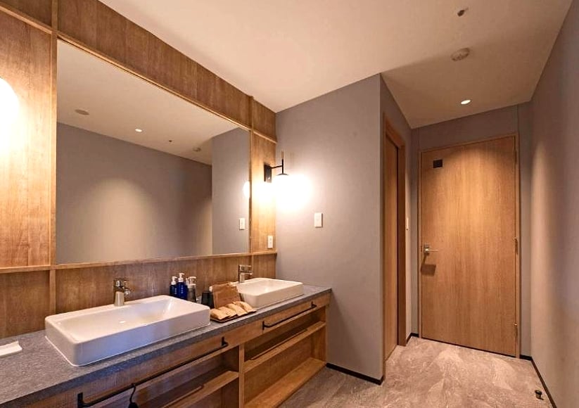 連衛浴空間都是木頭打造,柔光照明與暖色系的布置,視覺效果讓人內心充滿溫暖,這種設計不只好看,也讓人感覺貼近自然。