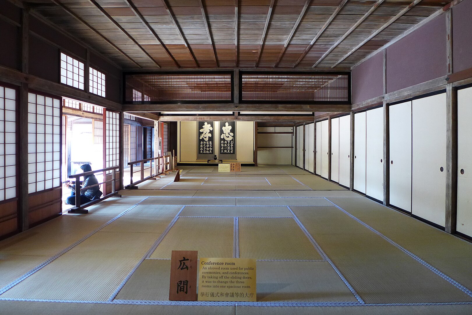 「會議室」採榻榻米連結式布局,以格子窗及木質天花板打造書院氣息,展現飛驒匠的木工工藝與江戶時代的官方建築美學。此處是陣屋中最大的室內空間,能容納多人同時出席,是舉行會議、裁決或集會的地點。