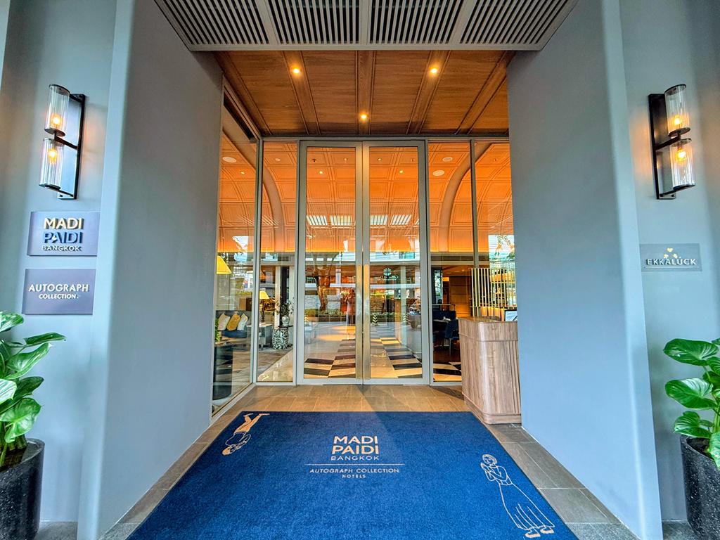 2023年底開幕的Madi Paidi Bangkok Autograph Collection,是萬豪集團首間進駐曼谷的傲途格品牌飯店,地點選在熱鬧又質感兼具的通羅Thong Lo區,走路只需約3分鐘就到BTS通羅站。雖然規模不大,僅有9層樓、57間客房,但從踏入飯店大廳開始,就能感受到與一般連鎖酒店截然不同的氛圍與設計巧思。