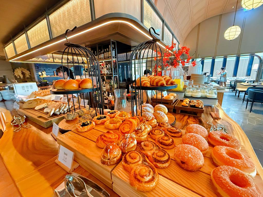 早餐供應於一樓的EKKALUCK餐廳,形式為半自助+單點主餐。自助區有起泡酒、沙拉、起司、小麵包等精緻品項,主餐則可選泰式粥、蟹肉歐姆蛋或優格碗,不但食材新鮮,擺盤也像高級餐廳等級。水果由服務員現切送上桌,讓整個早餐用餐體驗更顯細緻有溫度。