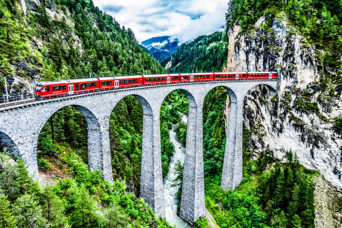 於1904年開通的「阿爾布拉段鐵路」,長67公里,途經42條隧道、144座高架橋與封閉及半封閉式地道,後段的「蘭德瓦薩拱橋」是此段鐵路最經典的景點,這座高架鐵道拱橋矗立在山谷中已逾百年,是世界上最具代表性的鐵路之一,此路線與伯爾尼納線共同組成的鐵道景觀,被聯合國教科文組織列為「世界文化遺產」。