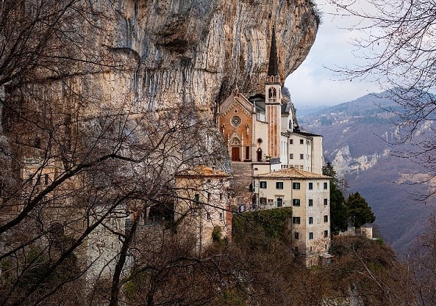 秘境懸空教堂建於16世紀,座落於海拔774公尺的岩石突出處,懸於山崖之上,遠看如漂浮在半空中,宛如隱世桃源。由於路途艱險地勢險要,教堂得以完好保存至今500年,是歐洲少見的神秘景觀與隱居之地。