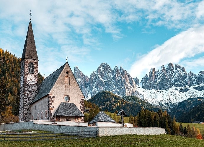 多洛米堤宣傳品的代表-富內斯山谷教堂