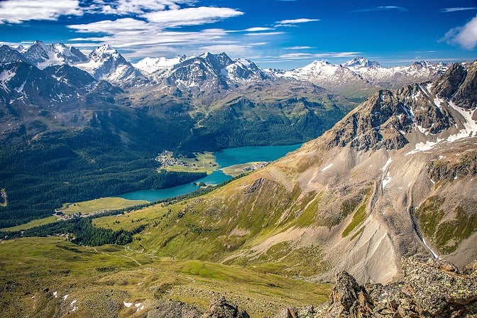 恩加丁谷地是一條長約80公里的深邃谷地,以串聯多個湖泊與純淨山景聞名,聖莫里茲湖正是位於這條谷地中。這裡的湖水顏色隨著光影變換美麗極了,大哲學家尼采曾在此居住了七個夏天,他曾說恩加丁谷地是他的靈魂棲息地,可見此處的風景有多絕美。