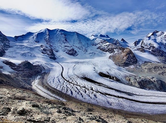 相傳有位相貌絕世的仙女住在山上,獵人們因為想要找尋她的蹤跡,皆不幸消失在冰川中,這座山因此得名。仙女峰海拔2,978公尺,站在觀景台上,可對望東阿爾卑斯山脈最高峰4,049公尺的伯連納峰,而莫爾特拉奇冰川在腳下延伸,冰裂紋理清楚可見,好驚喜能如此近距離欣賞冰川奇景啊!