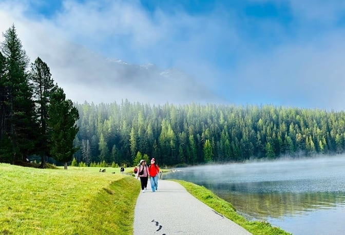 好漾旅行社精心安排聖莫里茲連泊兩晚,讓旅客保留足夠的時間能漫步在聖莫里茲湖畔,享受高山芬多精。環湖一周約4.4公里,路線平緩易行適合一般大眾,一路上可欣賞清澈見底且倒映群山的湖水,沿途有許多長椅,可隨時坐下來凝望湖面美景,無論是清晨的薄霧,還是黃昏的餘暉,都為這片湖增添無限的魅力。