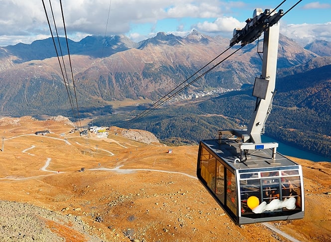 前往仙女峰可輕鬆搭乘高山纜車,進纜車站時,周圍風景是草坡、鐵道與遠方山脈,是典型的阿爾卑斯山景,坐上纜車後,幾乎是筆直向上拉升,短短幾分鐘窗外的景觀立刻改變,雪山及冰河直接鋪展在眼前,在極短時間內從草坡轉換成冰河世界,真讓人驚嘆連連。