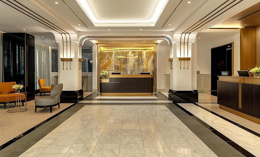 建築內部擁有一個巨大的中央天井,改建後成為充滿自然光的玻璃頂中庭,讓這座百年老建築內部顯得極其通透。採用極簡奢華風格,搭配吊燈與藝術擺件,營造現代都市酒店的舒適感又具文化底蘊。