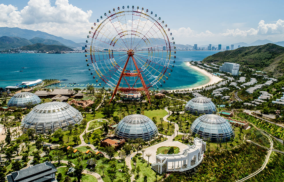 芽莊的島上有一個珍珠樂園,分為6大區域,包括水上樂園、冒險樂園、動物園、植物園、綜合遊樂設施,甚至有世界前10大摩天輪,規模非常驚人,60個觀景車廂可搭乘約480人,旋轉大約20多分鐘,最高點時可360度俯瞰海島全景及散落在海面上的珍珠小島,以及遠方芽莊市區那道優美的月牙形海岸線。
