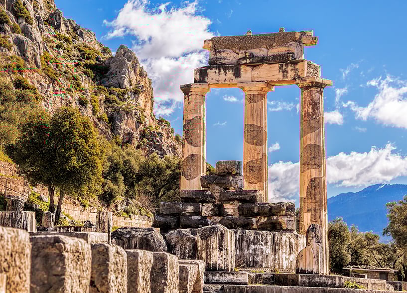 傳說眾神之王宙斯曾放出兩隻雄鷹,牠們在天空飛行後在德爾菲相遇,因此這裡被視為「世界的中心」,這樣的神話讓德爾菲在古希臘擁有無比神聖的地位。此處供奉太陽與預言之神阿波羅,是無數朝聖者與統治者前來尋求指引的地方。